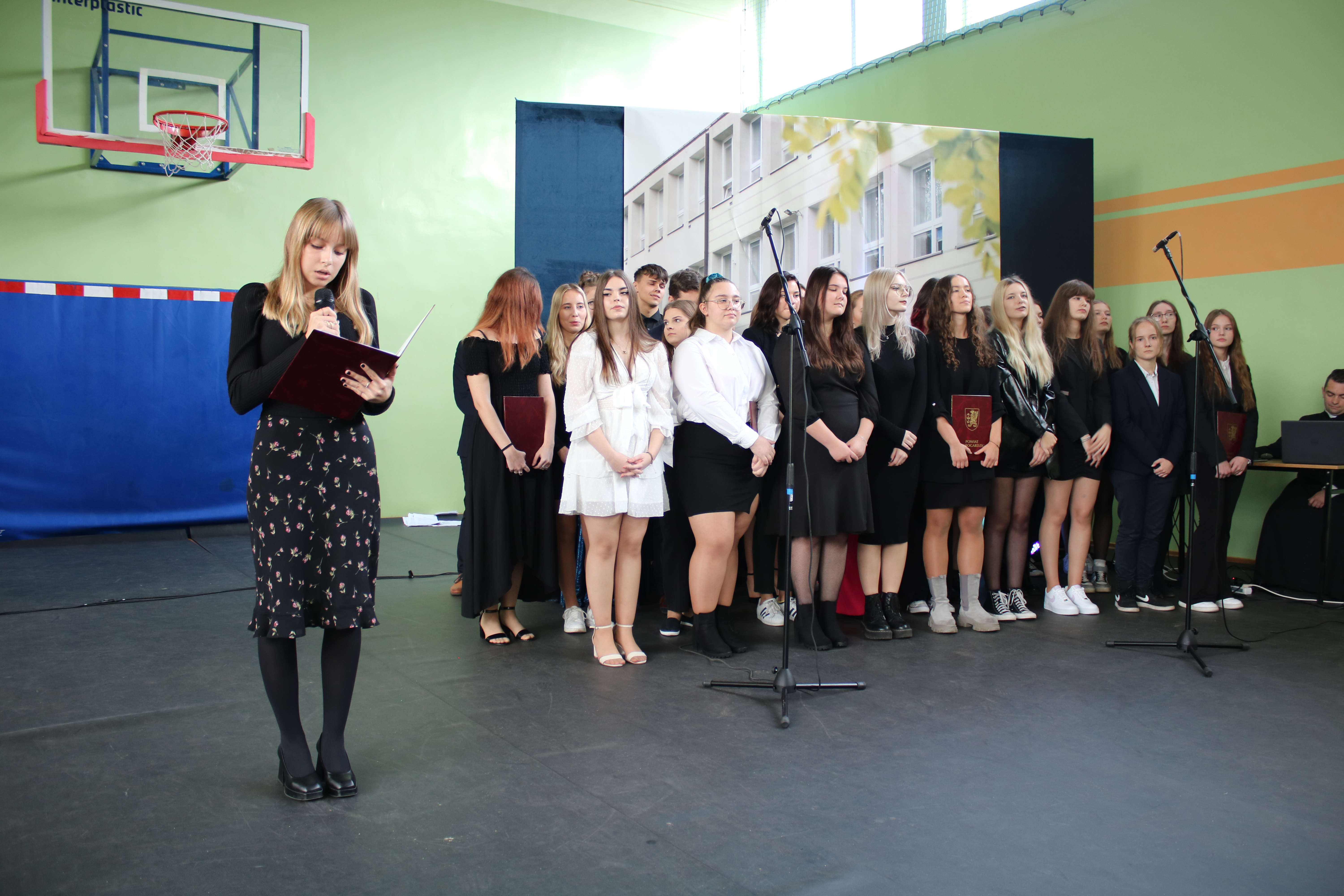 Dzień Edukacji Narodowej w Technikum im. gen. J. Hallera w Owidzu stał się okazją, aby pierwszoklasistów oficjalnie włączyć do szkolnej społeczności. Tradycyjnie uczniowie pierwszych klas złożyli ślubowanie na sztandar, że będą pilnie wypełniać swoje obowiązki i dbać o dobre imię szkoły.