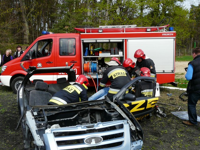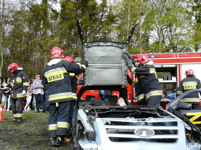 - pokaz Straży Pożarnej w akcji ratunkowej z wrakiem samochodu, połączony z jego późniejszym gaszeniem,