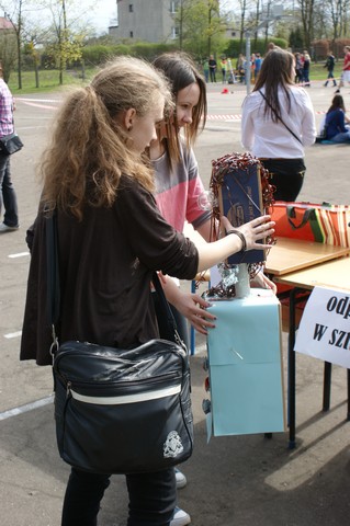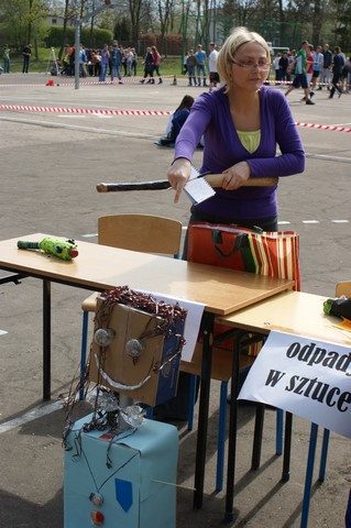 Na stanowisku prowadzonym przez Panią Marzenę Malinowską odbył się konkurs artystyczno-ekologiczny"Dzieło sztuki z odpadów". Uczniowie tworzyli z różnych odpadów portrety postaci i przedmioty użytkowe.