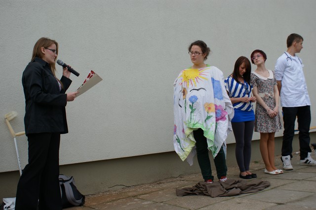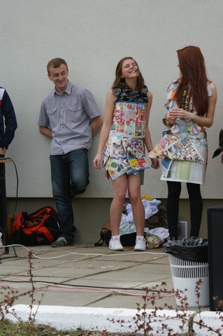 Zaraz po przedstawieniu odbył się konkurs mody ekologicznej. Uczniowie występujący w tym konkursie musieli przygotować stroje wykonane w całości z odpadów i zaprezentować je na scenie. Jury w składzie: Małgorzata Tandecka, Adam Döring i Ryszard Kaiser oceniało pomysłowość i estetykę wykonania stroju. Pierwsze miejsce zajęła Katarzyna Mailinowska z klasy II TH, na miejscu drugim uplasował się uczeń Sylwester Watras z klasy I TI, a trzecie miejsce ex aequo zajęły Justyna Borchardt z klasy I TOT i Izabela Kurs z I TH. Strojom możecie się przyjrzeć sami na zdjęciach poniżej: