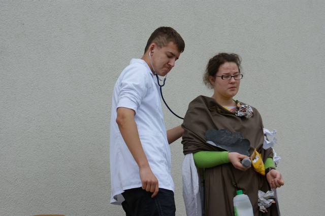 Panie Izabela Szamszon oraz Marzena Malinowska wraz z uczniami Technikum Ochrony Środowiska, przygotowały przedstawienie o tematyce ekologicznej. Uczniowie podkreślali jak ważny jest nasz wspólny trud nad utrzymaniem czystości naszej planety i jak destrukcyjny wpływ na nią mają nasze czasami bezmyślne działania. W przedstawieniu udział wzięli: