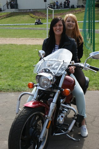 Szczególnie uczennice ZSP w Owidzu cieszyły się z możliwości przejażdżki motocyklem z panami z Klubu Motocyklowego.