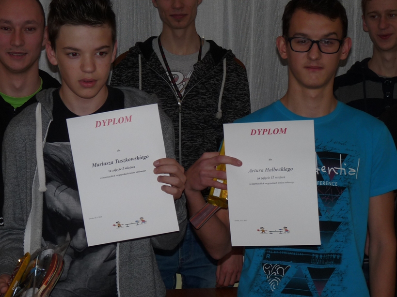 Pierwsza trójka otrzymała dyplomy a także nagrody rzeczowe (siatkę do tenisa stołowego, rakietki i piłeczki).
