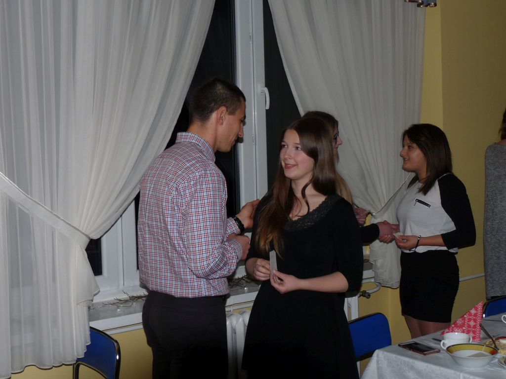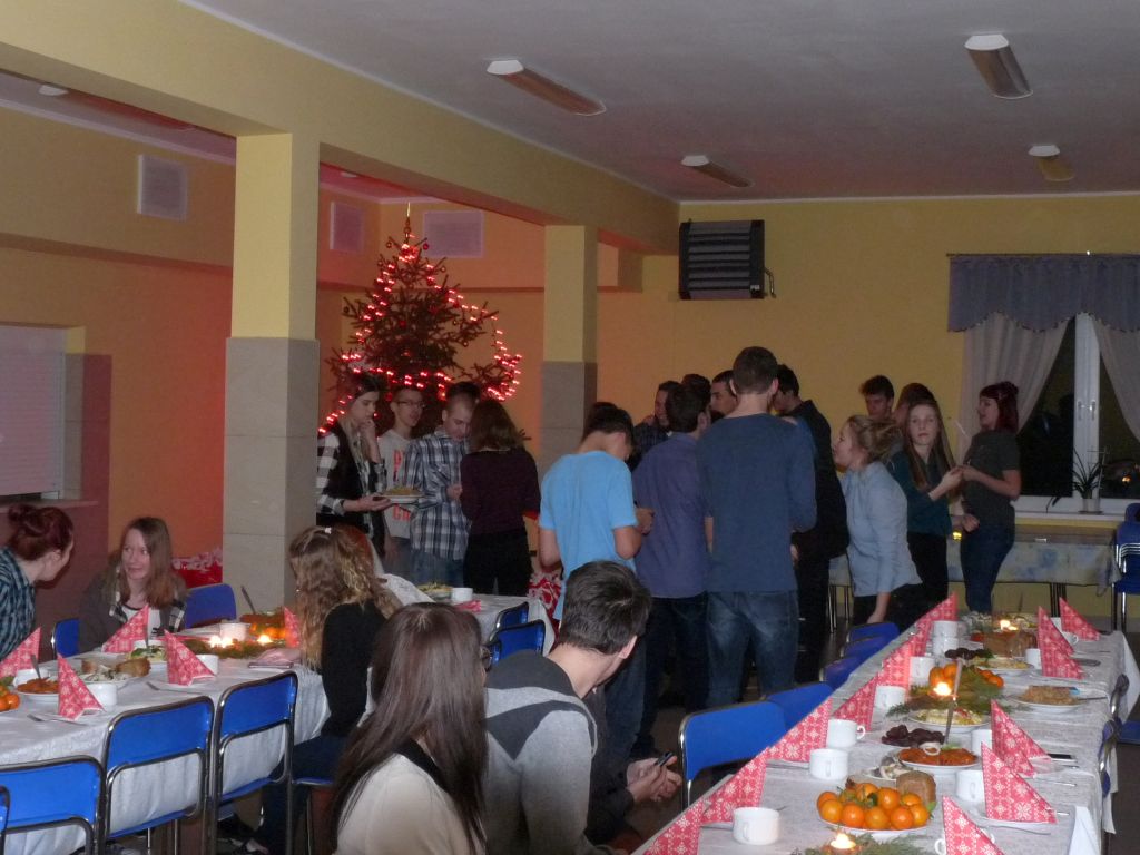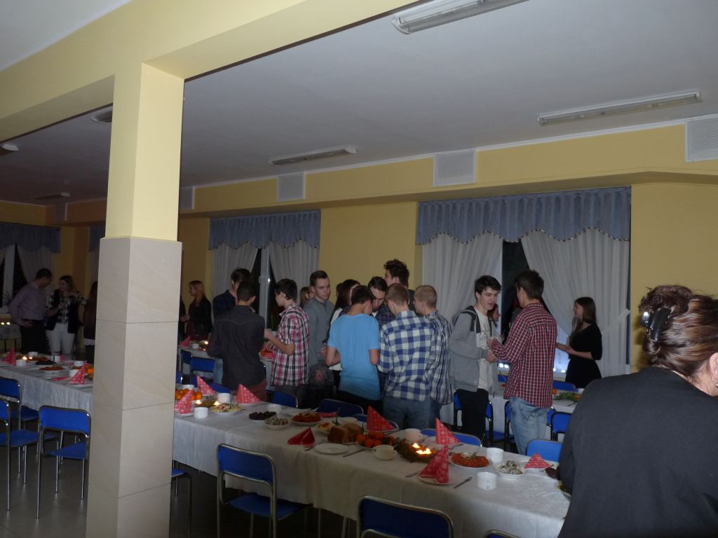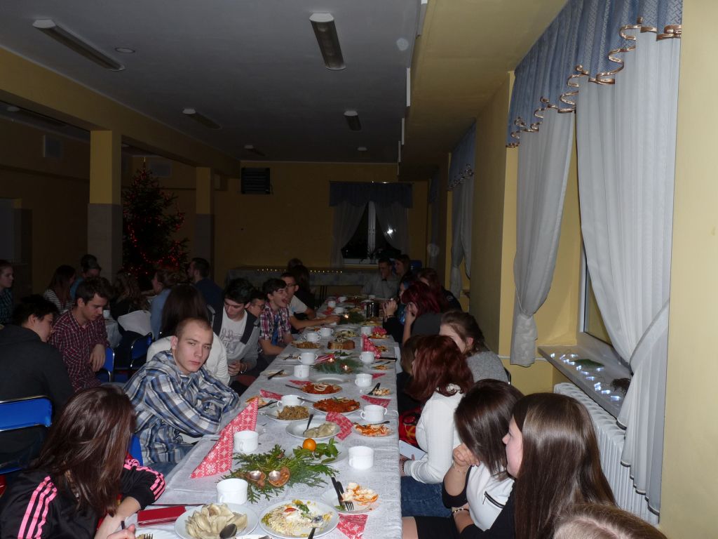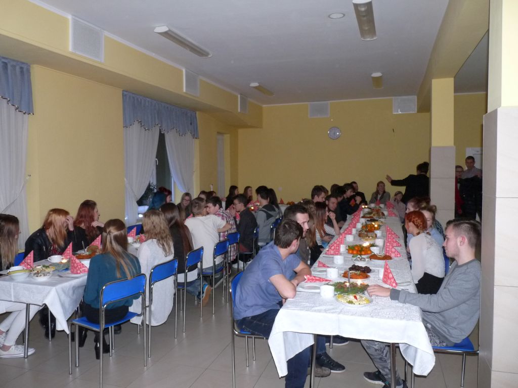 Po przemówieniu pani dyrektor i złożeniu życzeń, również przez księdza wszyscy podzielili się opłatkiem i zasiedli do stołów. We wspólnym gronie zaśpiewano kolędy. Po kolacji do stołówki zawitał „Święty Mikołaj”, który rozdawał upominki. Aby otrzymać prezent, każdy musiał zaśpiewać fragment kolędy.Organizatorem była Młodzieżowa Rada Internatu i wychowawcy internatu.